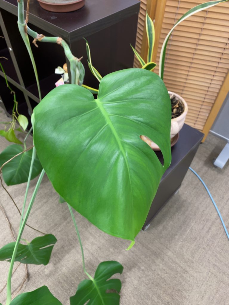 夏に新しく生えた葉っぱが、冬でも元気にこんなに大きくなりました!今日ご紹介するのはモンステラさんです✨(たぶん)