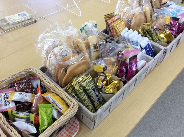 お菓子はおせんべい、クッキー、チョコレート、和菓子、キャンディー等々たくさんの種類を揃えていますので「今日は何を食べようかな」と皆さん楽しそうにお菓子を選ばれています。小名浜校ではお煎餅が人気ですが、欠かせないのがニッキ飴と塩あずき飴です。楽しみにされている方が多いので切らさないよう気を付けます(笑)